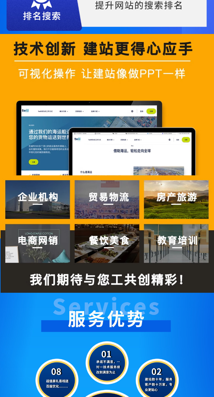 友好的seo,所有页面均都能完全自定义标题/关键词/描述,PHP程序(php≥7.0,<8.0),安全、稳定、快速;用低成本获取源源不断订单!
